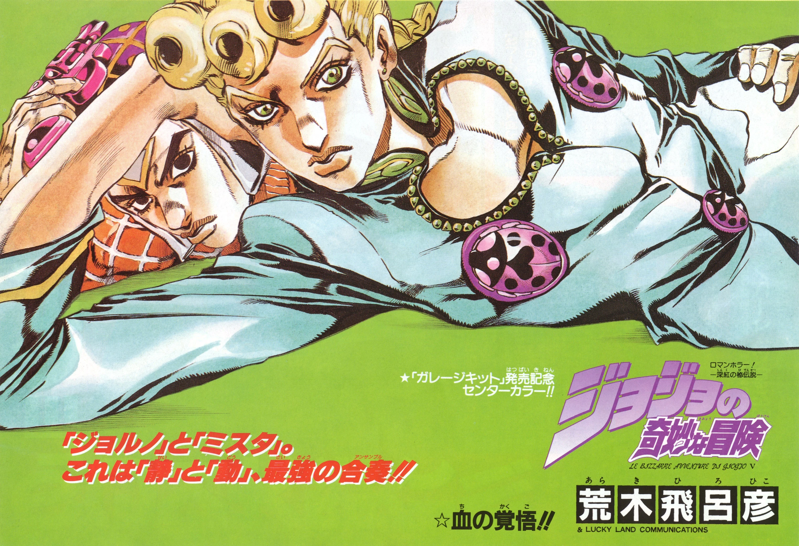 Ghiaccio takes the disk with him, and Mista desperately rushes toward him for an impossible fight. Giorno suddenly shouts at Mista, and reopeing his own wounds, Giorno sprays blood around Ghiaccio, revealing the weaknesses in White Album Gently Weeps. Mista then positions Sex Pistols and ricochets his bullets on a metal pole, bypassing the defenses of Ghiaccio and reaching the airhole.