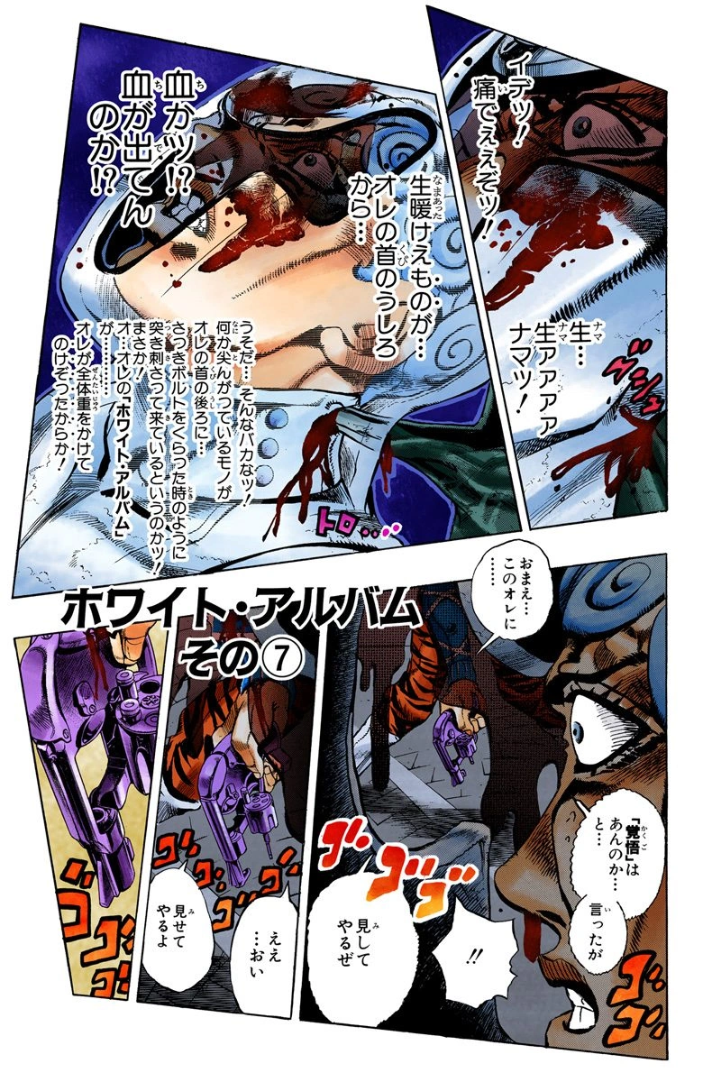 White Album, Part 7 (ホワイト・アルバム その⑦ Howaito Arubamu Sono 7), originally The Whereabouts of Resolve!! (覚悟の行方!! Kakugo no Yukue!!) in the WSJ release, is the seventy-sixth chapter of Vento Aureo and the five hundred fifteenth chapter of the JoJo's Bizarre Adventure manga.