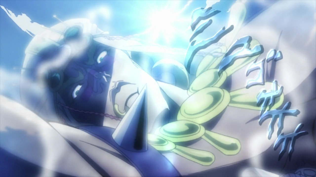 For the music, Taku Iwasaki directly came to the studio for the final editing to ensure that the soundtracks perfectly fitted the images. People aren't sensitive to the same scenes. For some, the real emotional sequence comes when Caesar hits Wamuu in vain with his last strength, others are more sensitive to Lisa Lisa's tears or Joseph's cry. I think it's a generational thing. (laughs). Anyway, every member of the team's fits together brilliantly, it's one of our best episodes. |